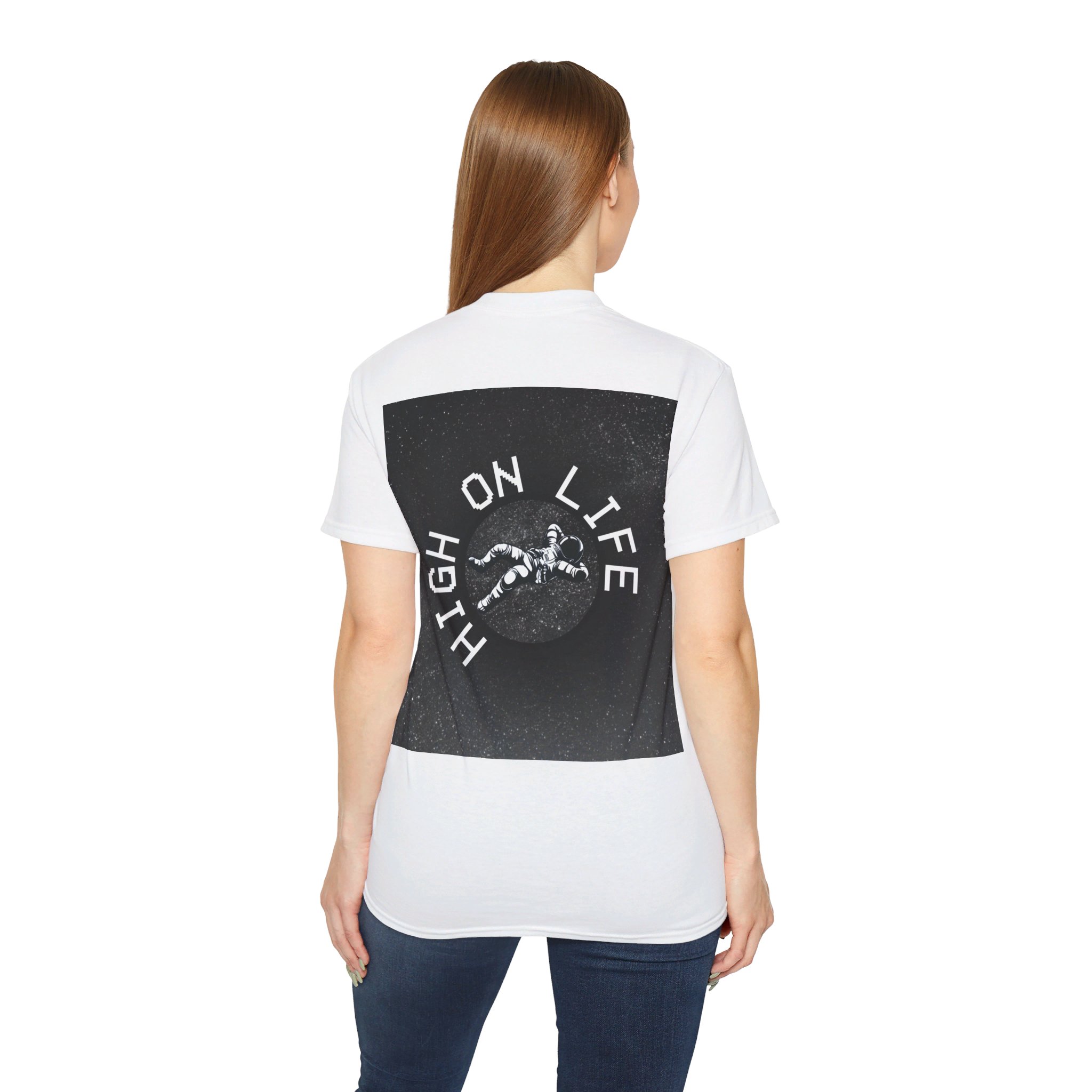 Adorning the front is a captivating astronaut design, evoking the thrill of exploration and the boundless possibilities of the universe. Against this backdrop, the phrase “High on Life” is boldly displayed, encapsulating a mindset of positivity and embracing life’s adventures.